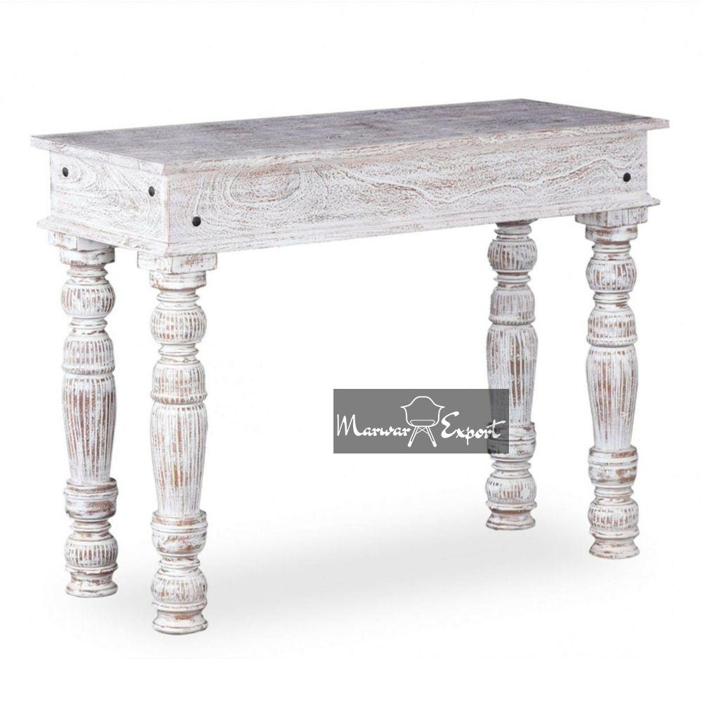 > Indian Hand Carved Solid wood Hall console table Whitewash 2
