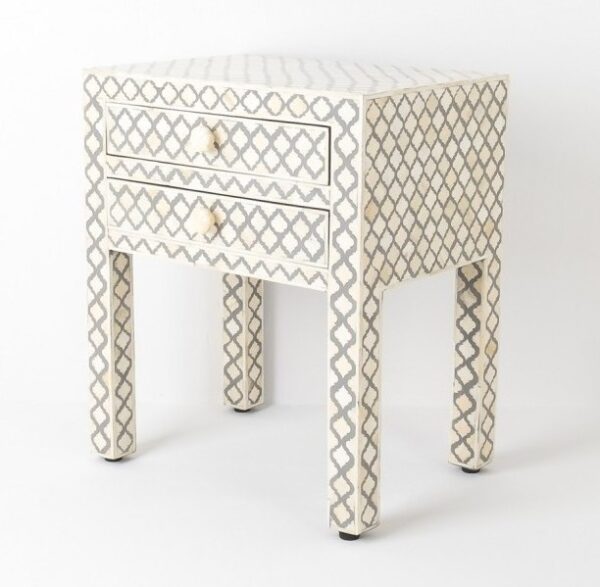 Grey Marrakesh Bone Inlay Bedside Table