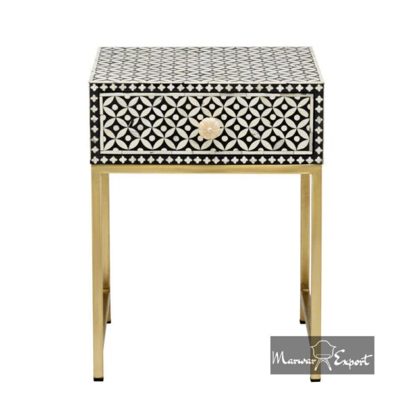 HOME   >   Stunning Bone Inlay Bedside Table Black Geometric