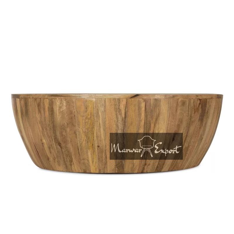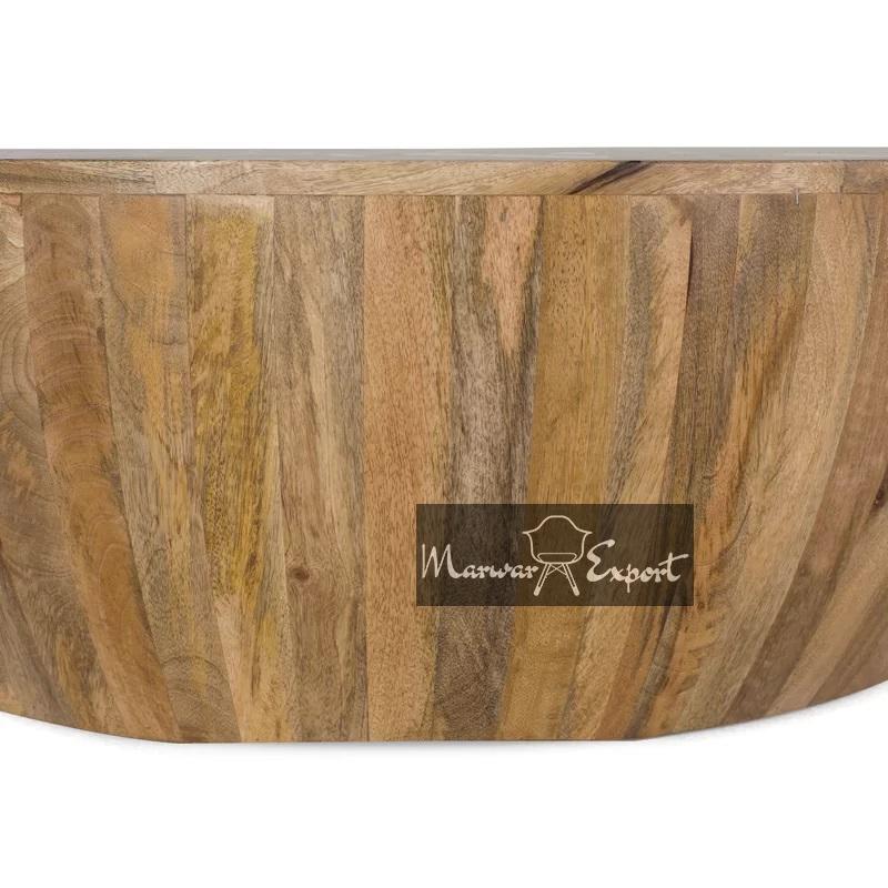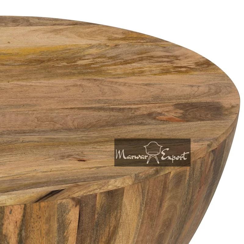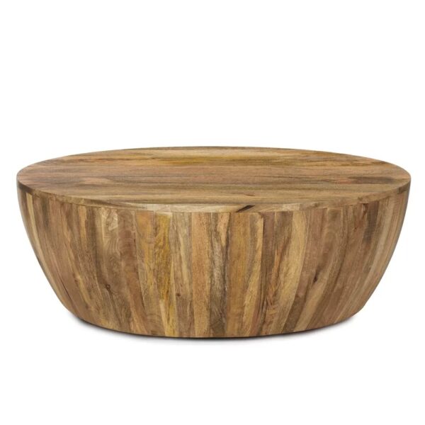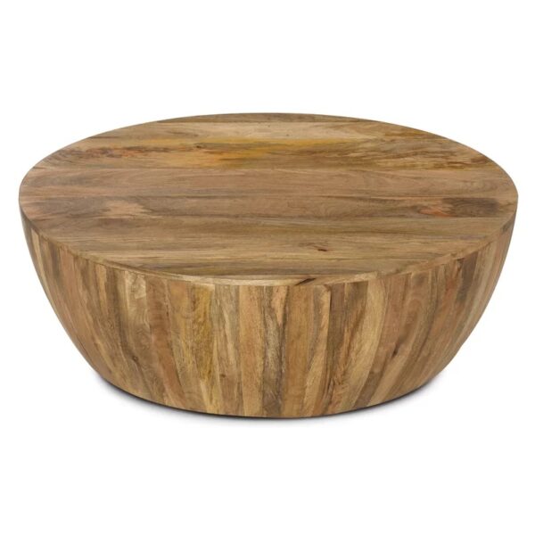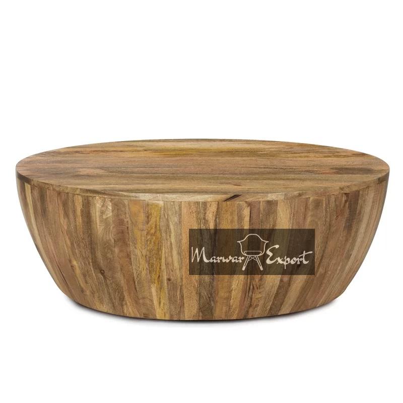 Solid Mango Wood Drum Style Coffee Table | Round Mango Wood Coffee Table